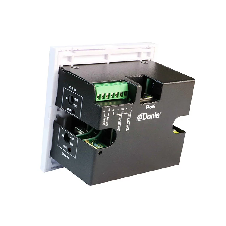 L'interfaccia 2CH Dante 2 Mic/Line Inputs X 2 Outputs Interface Panel è perfetto per applicazioni audio professionali, come sale conferenze, configurazioni di audio in diretta, studi di trasmissione e sistemi AV installati, in cui è richiesto affidabile dante-to-analog e conversione da analogico a dante Il suo design montato a parete consente l'integrazione pulita ed efficiente in vari ambienti mantenendo prestazioni audio di alta qualità.
