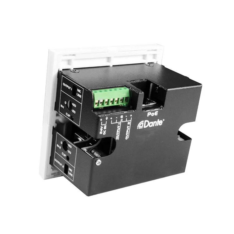 L'interfaccia 2CH Dante 2 Mic/Line Inputs X 2 Outputs Interface Panel è perfetto per applicazioni audio professionali, come sale conferenze, configurazioni di audio in diretta, studi di trasmissione e sistemi AV installati, in cui è richiesto affidabile dante-to-analog e conversione da analogico a dante Il suo design montato a parete consente l'integrazione pulita ed efficiente in vari ambienti mantenendo prestazioni audio di alta qualità.
